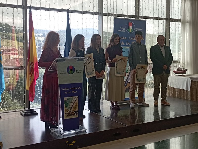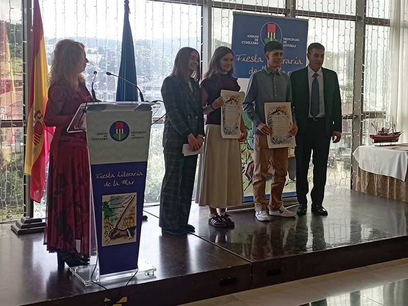 La Asociación de Amigos de Cudillero celebró el pasado fin de semana una nueva edición de su Fiesta Literaria de la Mar, que contó con protagonismo de nuestro colegio. Las alumnas de 1º de Bachillerato Helena Prats y Laura Riopedre recibieron sus galardones como ganadora y accésit, respectivamente, del concurso 'Cudillero, el pescador y la mar'. La cita tuvo lugar en el hotel Palacio de La Magdalena, en Soto del Barco, y las jóvenes estuvieron acompañadas, además de por sus familiares, por las profesoras del Departamento de Lengua Marina Peña y Alma Carcedo.